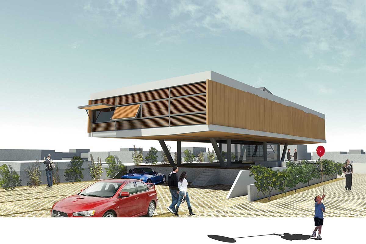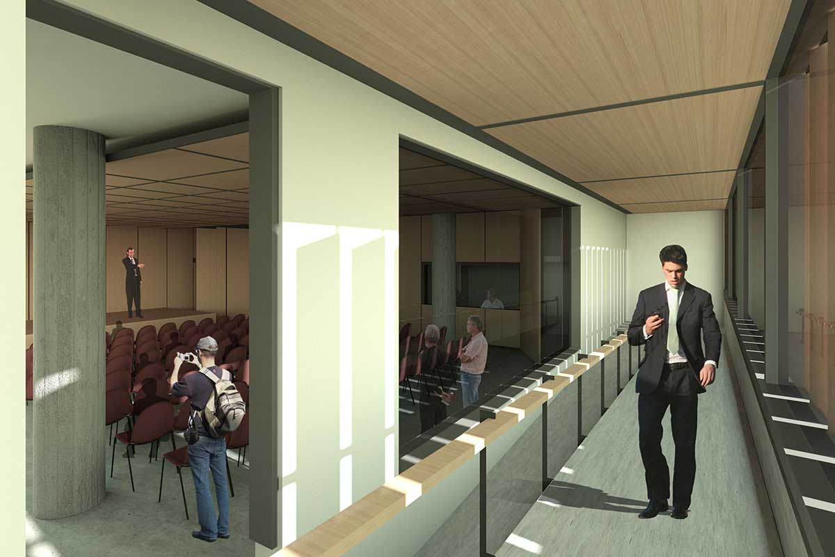 The building specifications required a distinction of the uses with a cultural character (exhibitions-event hall) and the offices of the municipality. This was one of the elements that led us to the final design. The climatic conditions of Nicosia and the intention of creating a landmark for the burghers were the other parameters that molded the design. The result was the treatment of the office volume as a separate shell that detaches from the rest of the building body and can function independently.