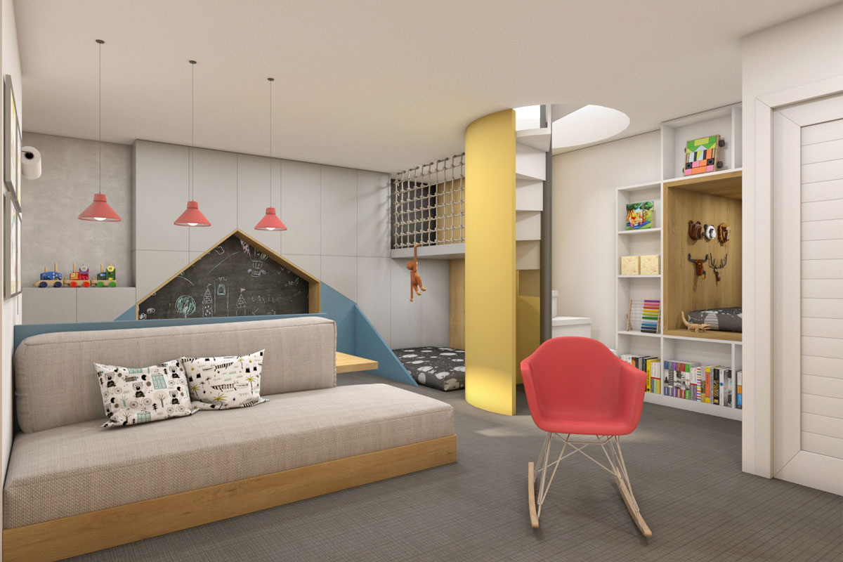 On the ground floor a kids’ playroom is designed with separate access to a back yard. Apart from creating a playful and happy, cozy space where children can play, create, relax, explore and finally call their own, we tried to exploit every space possible in order to create the essential storage.