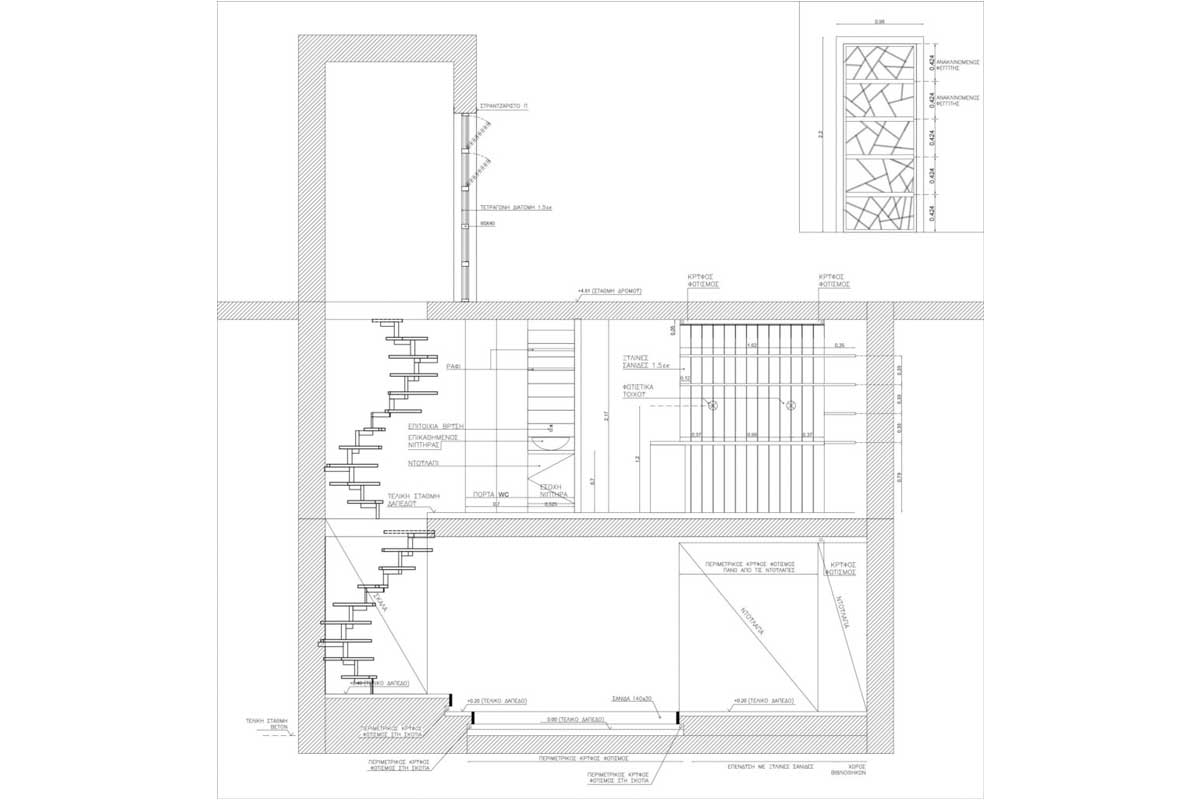 Converting a two-underground-floor space of an unfinished building into a living space was a difficult, small scale project, because of the space’s endogenous characteristics. Narrow floor plan, a three-level space dispersion, lack of natural light and residential infrastructure were only some of the existing difficulties. This “urban burrow” was situated in the basement of a typical Athens apartment building, were our client -a well-known female singer- lived.